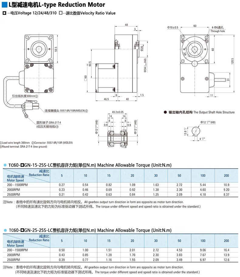 電機(jī)名稱:60系列L型直流無刷減速電機(jī)